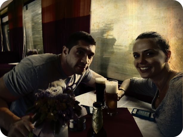 …and this is how you sleep on a train. Arrival DayAfter a very long day on the train from Prague to Budapest we finally arrive to our hotel. We were sleep deprived but what was worse was our hunger! We boarded the train without knowing that the cafe car only accepted cash and sadly, we had just enough crowns to buy two beers or nothing at all. So first thing on our agenda was to find some food! Unless you want to eat at McDonald’s it’s quite hard to find late night food in Budapest. It was well after midnight and our search began…sorry but I’d rather go hungry for the night than end my day with a whopper.Lucky for us, the only place that the concierge knew of that was open this late happened to be within walking distance. Off to Montenegroi Gurman we went. This happened to be a Serbian restaurant. Until this night, I was completely unfamiliar with this cuisine. Now, I’m still unfamiliar but know that you best be a carnivore if you want to eat here… or better yet, if you’re not into beef, lamb, pork or goat, then go elsewhere! This was really a true challenge for me since I’m still new to eating meat. I had no idea what to order, not just because there were no understandable translations but I also couldn’t decipher from the pictures of the menus what I would be eating. So what did I do? I ordered two dinners and crossed my fingers with hope that I would like one. Here’s what we had..