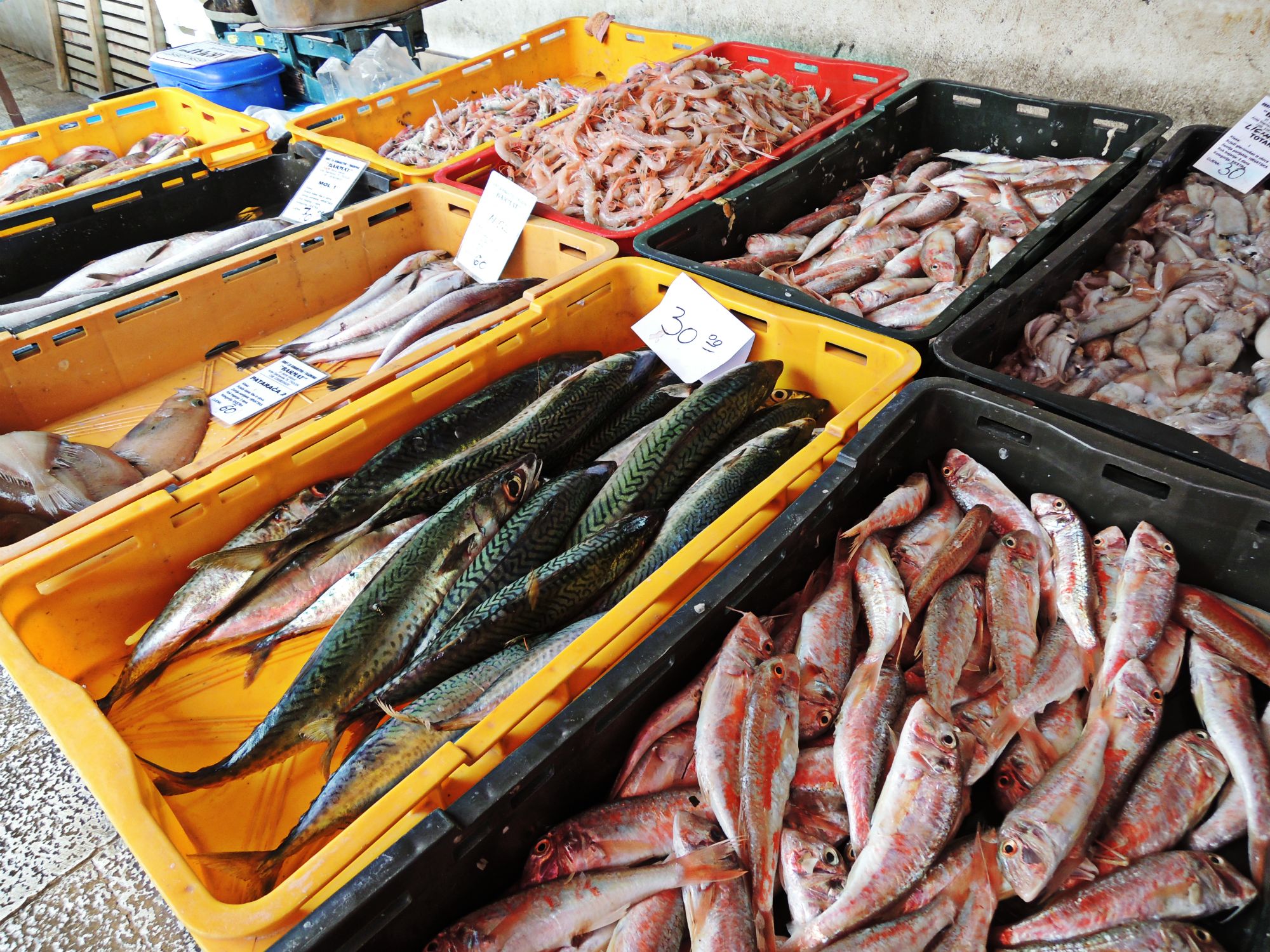 Learning how to select the freshest fish at the market in Trogir