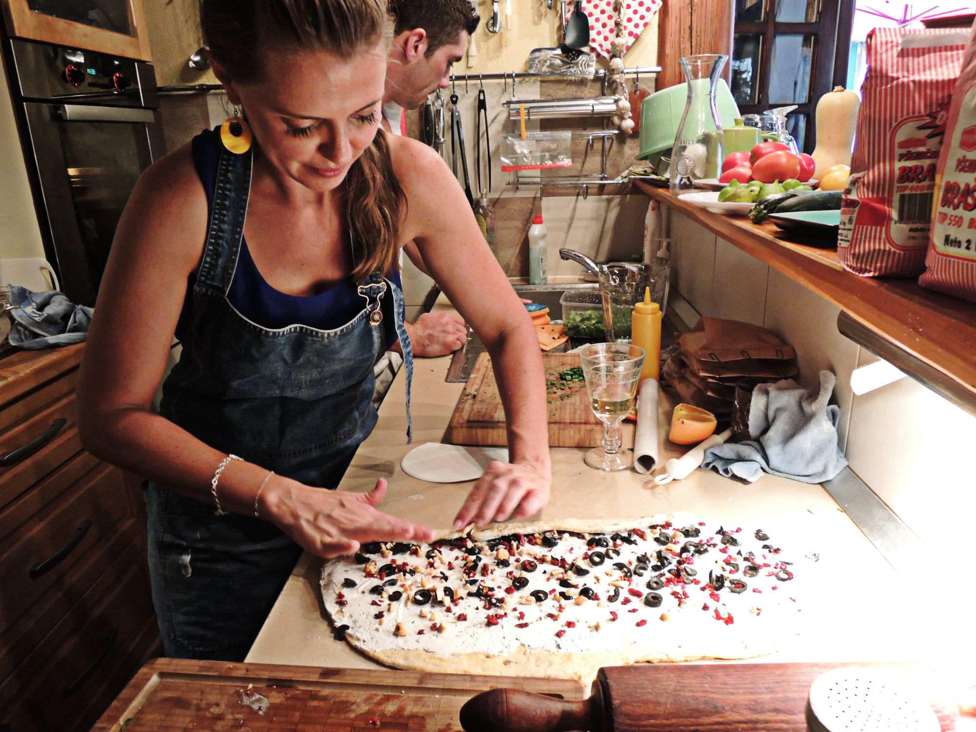 Tatjana teaching me how to make a delicious cheese and olive loaf