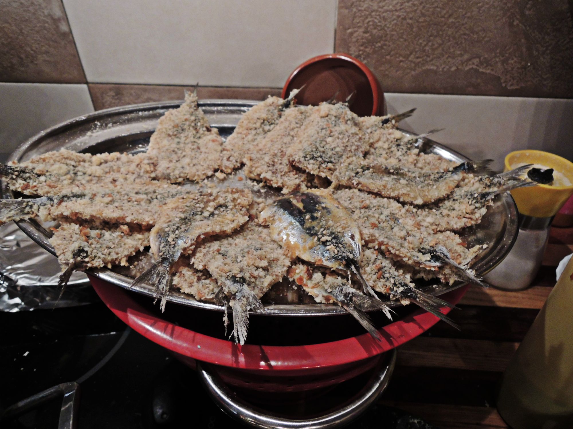 Frying sardines