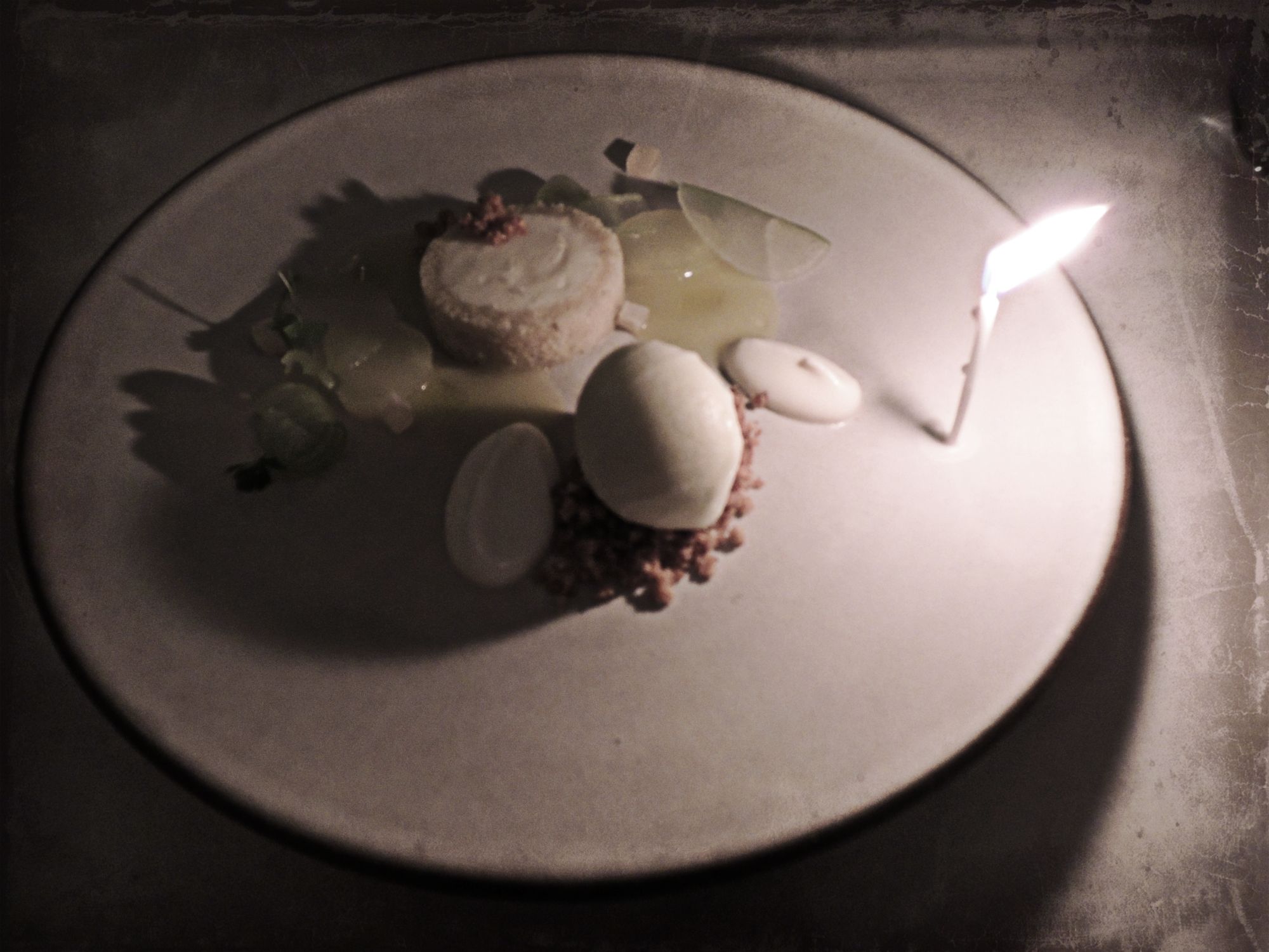 Cheesecake with Mango & Peanut…and a birthday candle!