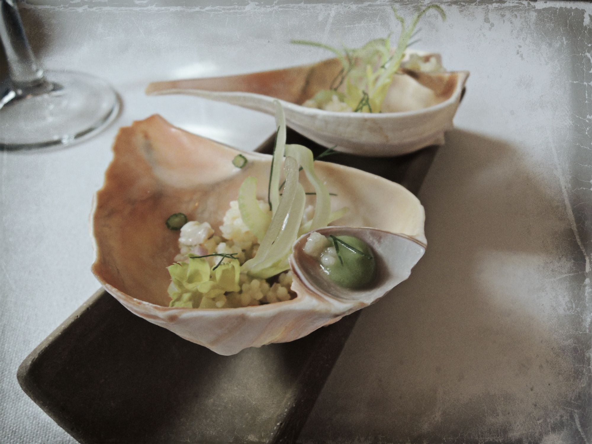 Having been lucky enough to dine at many highly acclaimed restaurants, I’m familiar with the little things that restaurants do to surprise their diners or showcase their food. What I wasn’t prepared for during this meal was how entertaining each course was in the way it was presented to us. At some points our table was full of a mist from a table top clam bake, later we were watching our carrots being hand-driven through a meat grinder and near the end of our meal I was beyond delighted to dig into my picnic basket to discover one of my favorite cheeses. This style of presentation has serious potential to come off as artificial and overdone but that was certainly not the case. We enjoyed every moment and was impressed by all the details put in creating and presenting each course.